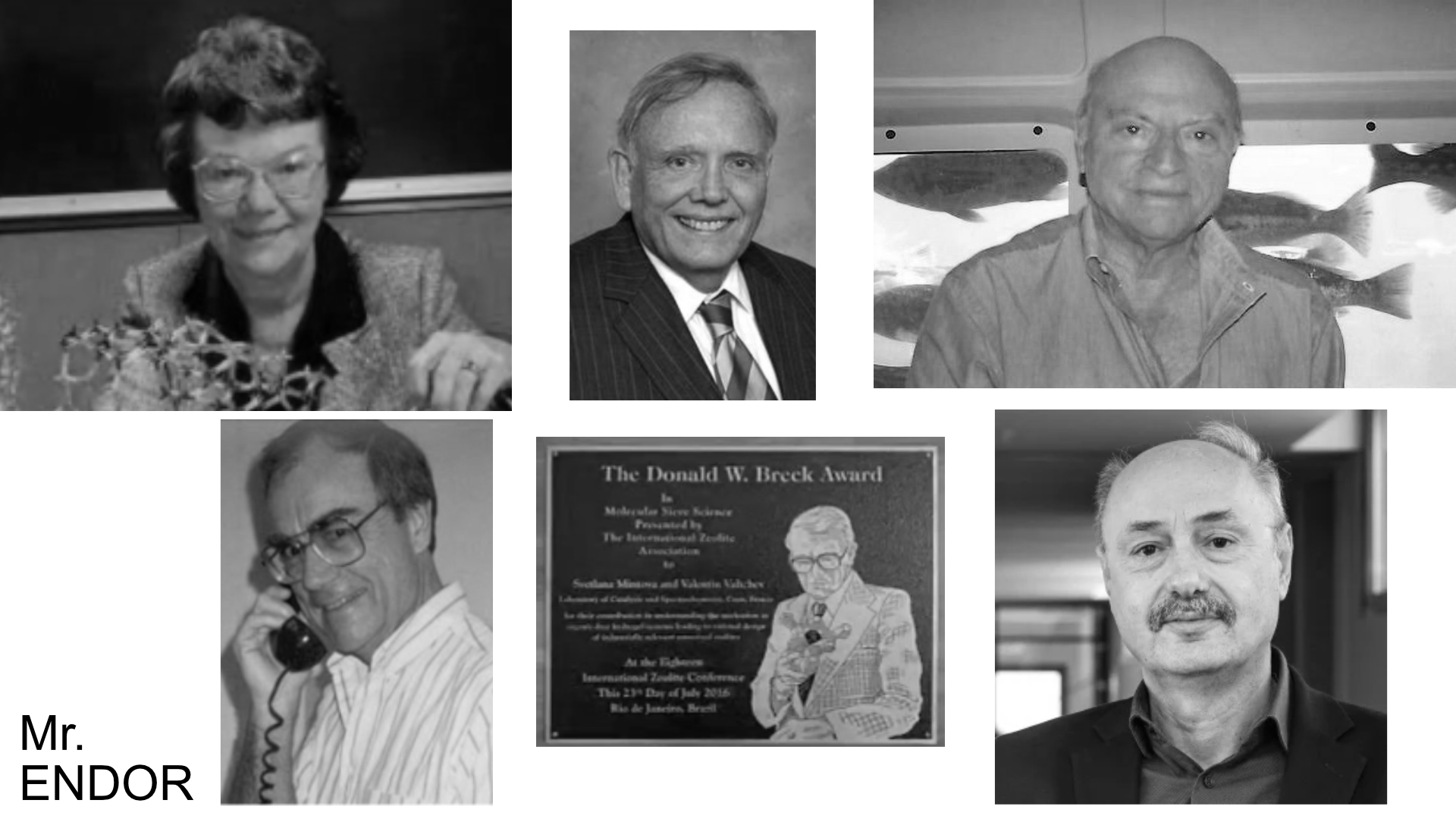 Dr. Angelos Lappas, Dr. Jim Hyde, Dr. James Boyle, Dr. Edith Flanigen, Dr. Donald W. Breck, Mr. Michael Brady (no photo), and Dr. August Maki