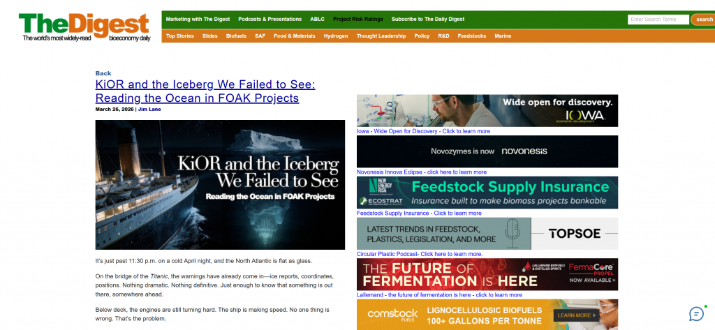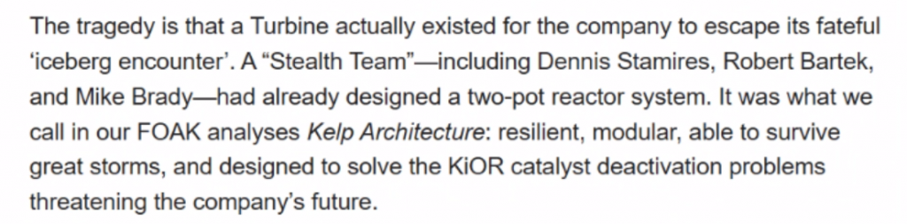 KiOR’s Columbus, Mississippi, 500 ton dry biomass per day commercial plant, with the single-reactor riser tower at center.