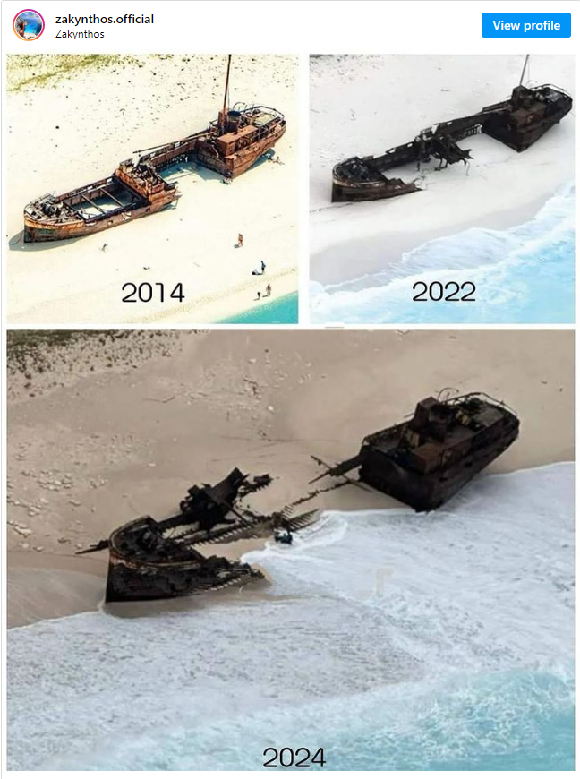 “So simple for everyone to see the rising water covering the beaches and the shipwreck of the Navagion” It’s like the old experiment where you take a glass of water and put ice cubes in it…the water in the glass rises. Our ice is melting!