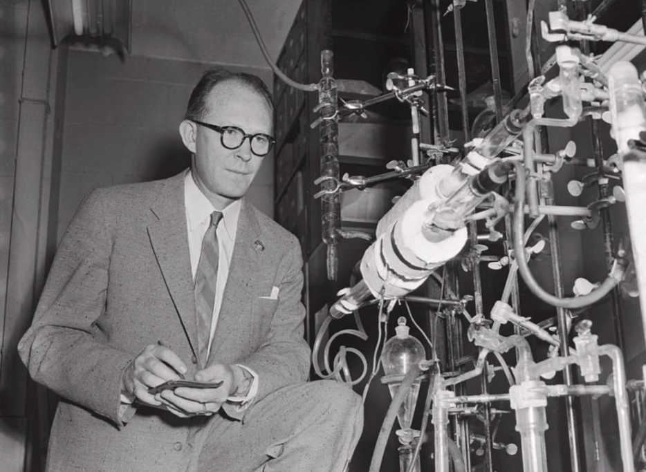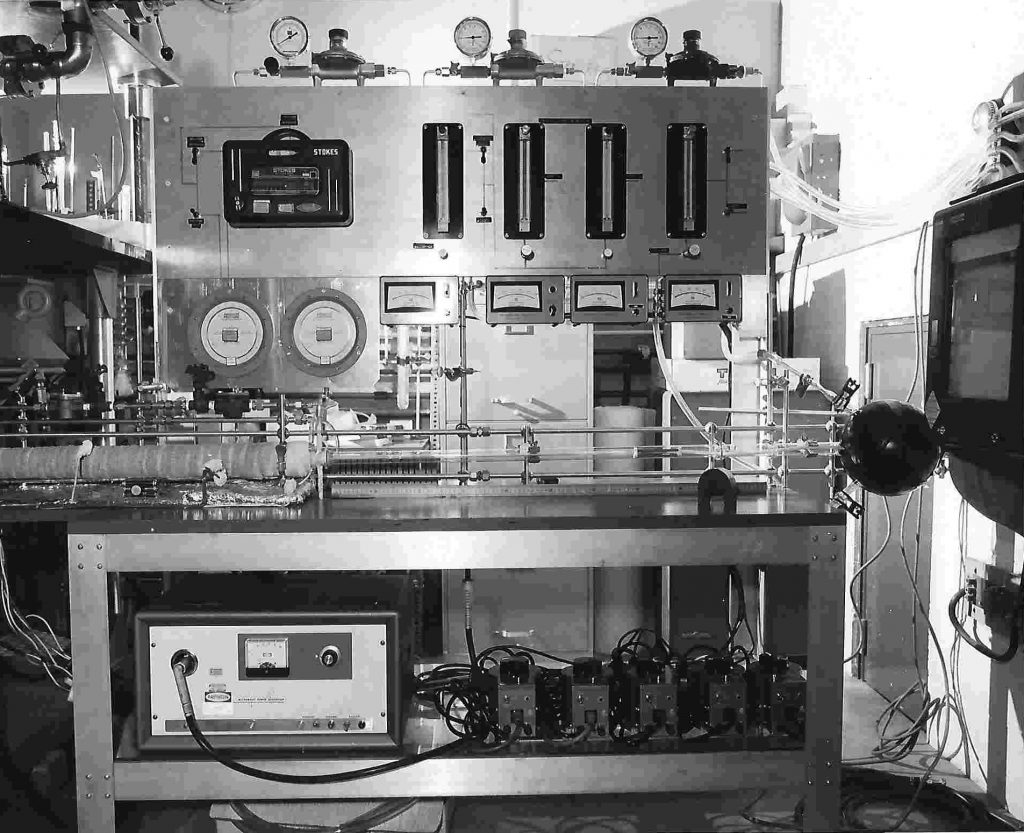 “THERE ARE CERTAIN SIMULARITIES OF THE EXPERIMENTAL SYSTEM LIBBY WAS USING TO DEMONSTRATE THE REACTION OF THE EXHAUST GASES FROM AUTOMOBILES RESULTING IN THE DESTRUCTION OF OZONE AND DR. STAMIRES SYSTEM (SHOWN ABOVE RIGHT). WHICH WAS USED TO DEMONSTRATE THE REACTION OF EXHAUST GASES FROM SUPERSONIC TRANSPORT AIRPLANES (SST’S).”